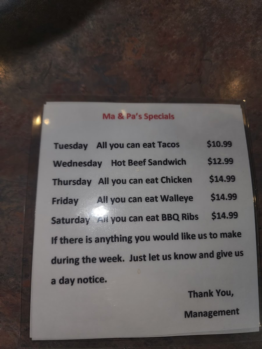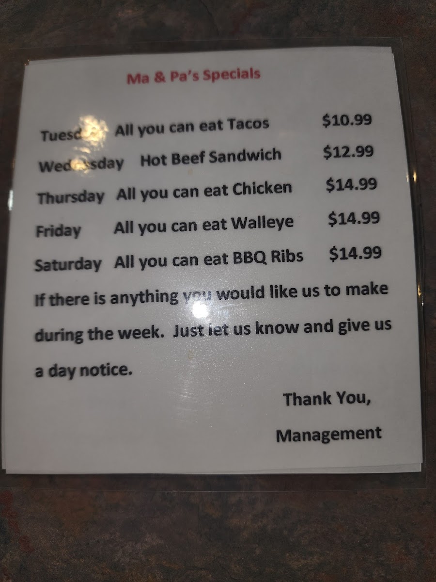 Overall, Ma & Pa's Diner offers a broad, satisfying menu with something for every taste and appetite, all served with a side of warm, friendly service that makes you feel right at home.